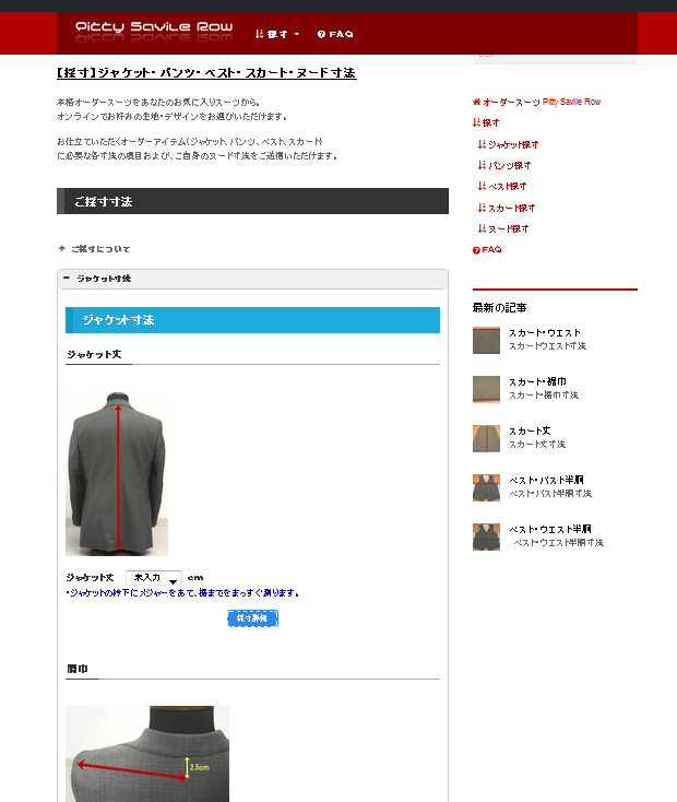 Pitty Savile Rowでは、ご愛用スーツ等をお送りいただくご採寸方法に加え、サイト内にご用意させていただいておりますご自分でご採寸いただくための採寸用フォーム、採寸マニュアルのページをこのたびリニューアル!!